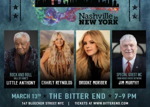 Join Brooke Moriber, Little Anthony of The Imperials and Charly Reynolds for Nashville in New York at The Bitter End on Thursday, March 13th